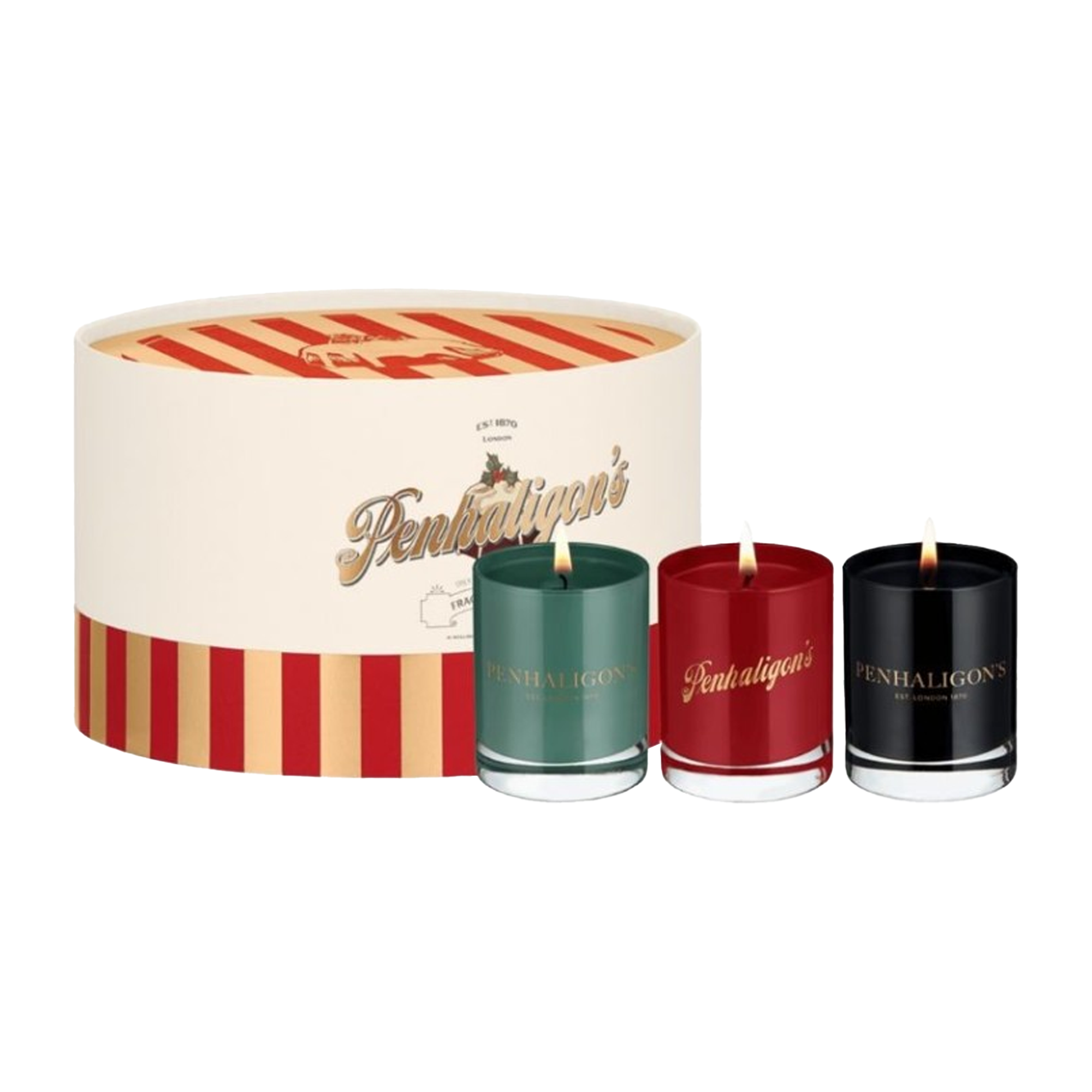 Penhaligon’s Fragrant Fancies Limited Edition Candle Trio brings festive elegance to any space with three luxurious scents presented in a striking red-and-gold striped gift box. Perfect for gifting or indulging yourself, each candle offers a unique aromatic experience.